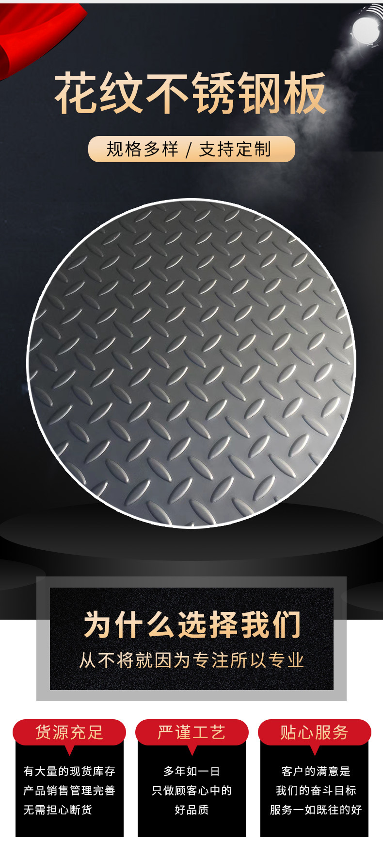 花纹MK在线登录(英文名称:StainlessSteelDiamondPlate)是通过机械设备在MK在线登录上进行压纹加工,使MK在线登录面出现凹凸图纹。在六十年代初由欧洲的大型轧钢厂开始小批量生产,随后由于花纹MK在线登录出色的耐腐蚀性和防滑性得到了众多行业的采用从而开始普及。最早的花纹MK在线登录的花纹样式为横竖条纹交错式,国内山西太钢和上海宝钢集团都在生产,在随后的20-30年中研究人员经过不断的实验和改进把拥有更好的防滑性的花纹设计出来也大规模的生产推广和应用了。近几年花纹MK在线登录的用途也在不断的创新、突破、改变,适用的行业