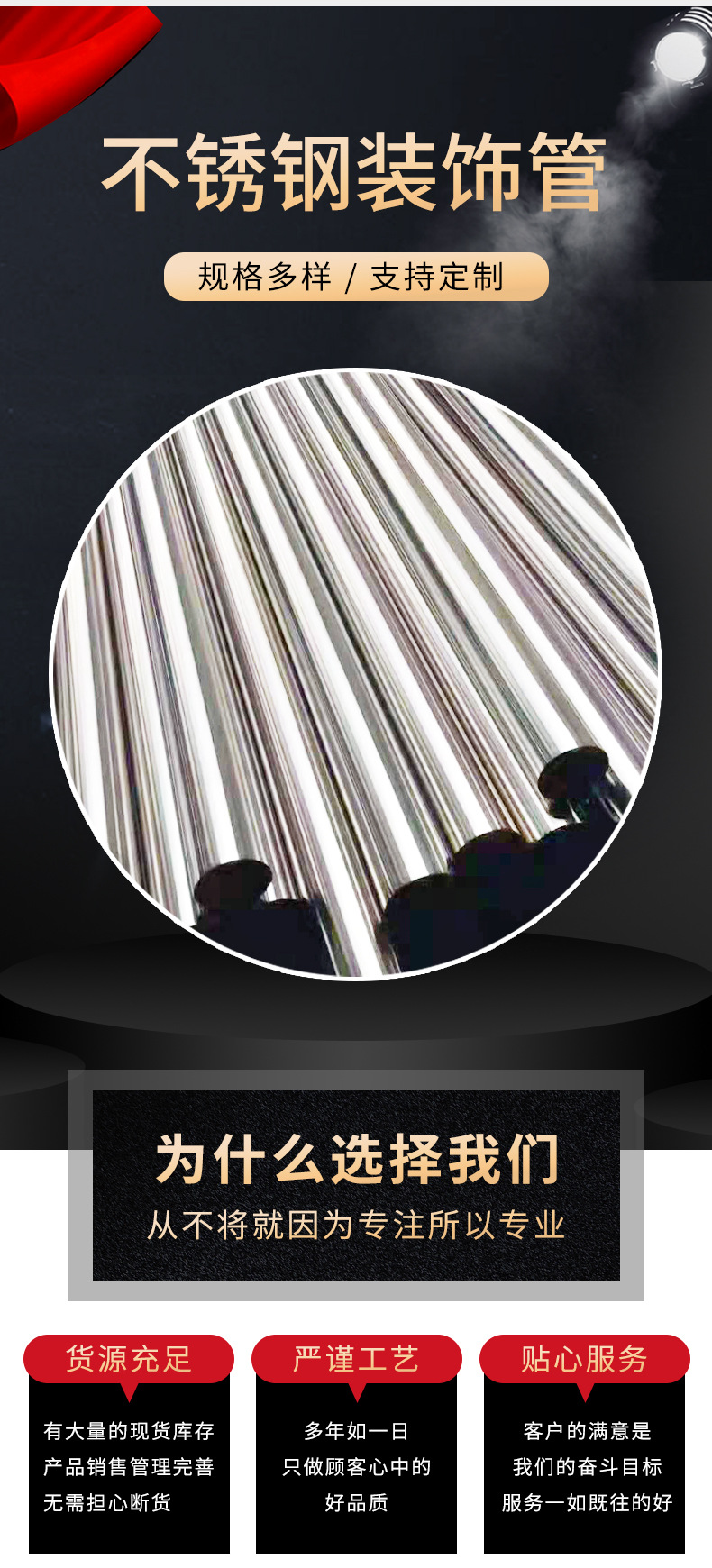 装饰MK也叫不锈钢焊接钢管简称焊管,常用钢材或钢带经过机组和模具卷曲成型后焊接制成的装饰MK。装饰MK生产工艺简单,生产效率高,品种规格多,设备资少,但一般强度低于无缝钢管。