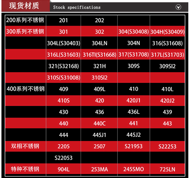 材质:201、304、316L、321、310S等